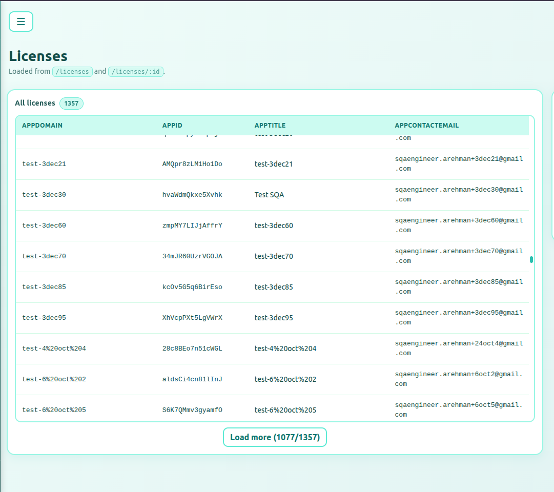 This deliverable introduces a searchable License List page within OpsConfig. The page allows operators to browse and locate licenses using substring search across key identifiers, while ensuring all sensitive data remains masked according to the ClientConfig API response rules.