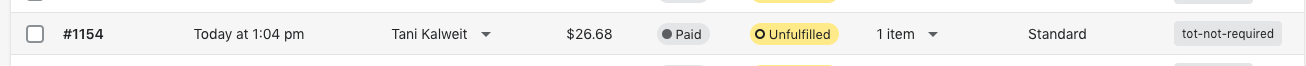 Orders that do not require verification will have a ‘tot-not-required’ tag In the orders tab in Shopify.