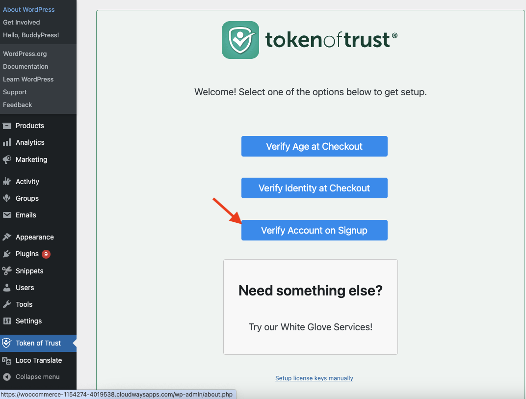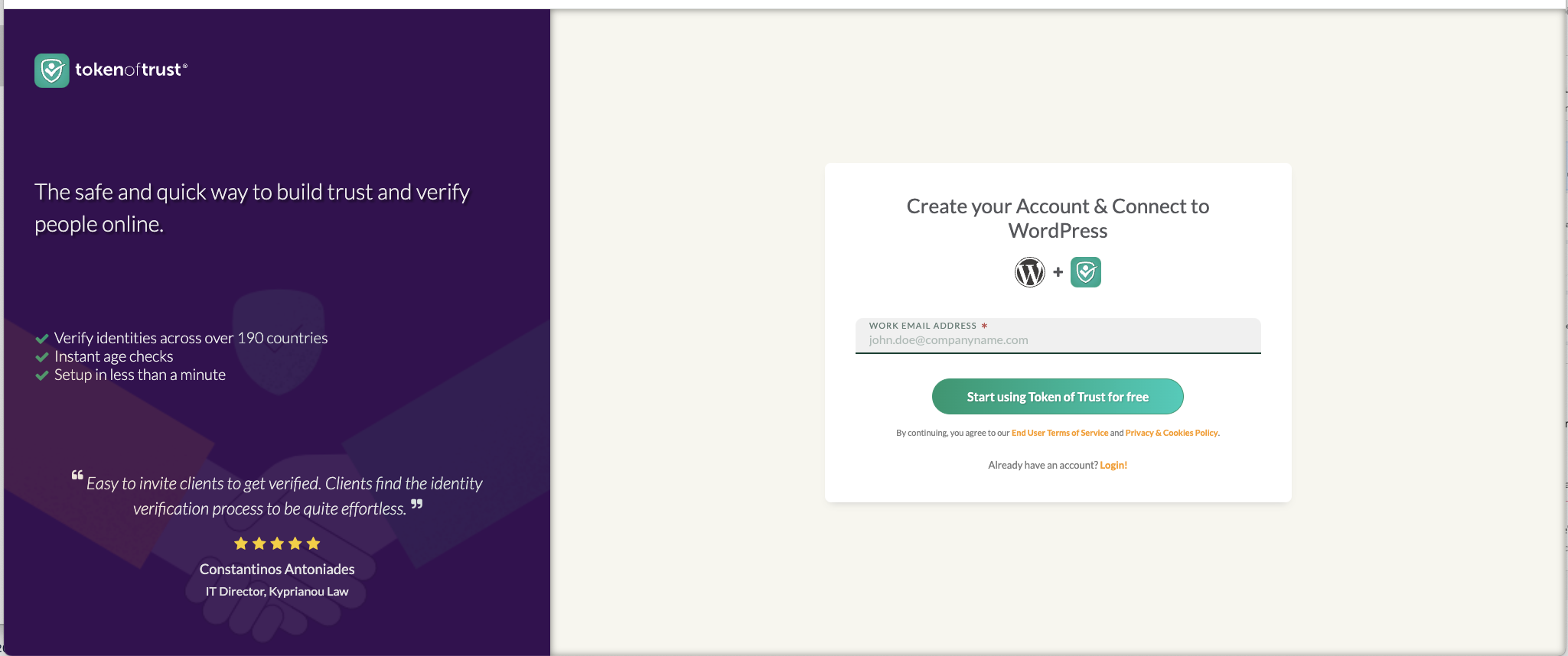 First, click the button 'Verify Account on Signup'. This will navigate you to Token of Trust to create an account.