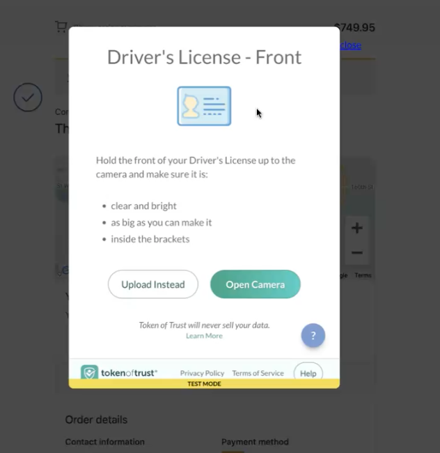 Customers who complete a purchase will now be prompted to submit their information for verification on the thank you page: