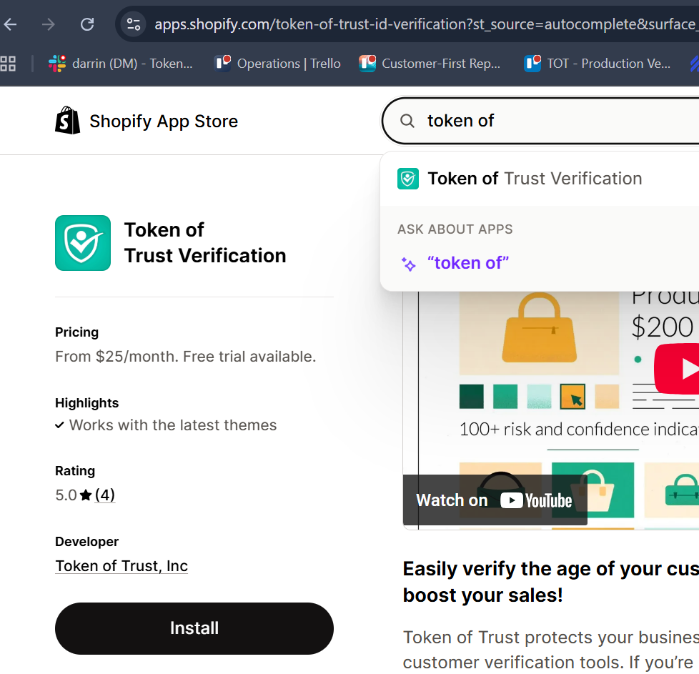 When you install the Token of Trust app on Shopify Basic (or any plan other than Shopify Plus) the Verification process will be configured after checkout on the thank you screen.