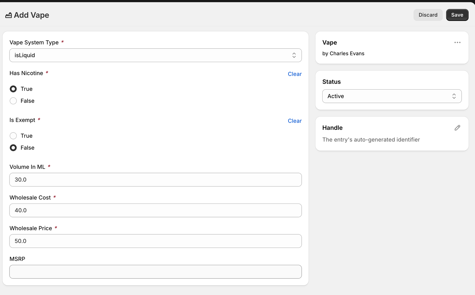 - Example: a vape juice product has 3 variants: 30 mL, 50 mL, and 100 mL. since each variant has a different volume in ml (crucial tax data), we can create a metaobject on each of these individual variants that has this difference of information, and as a result whatever is stored on the parent product's metaobject is irrelevant as everything is overridden.