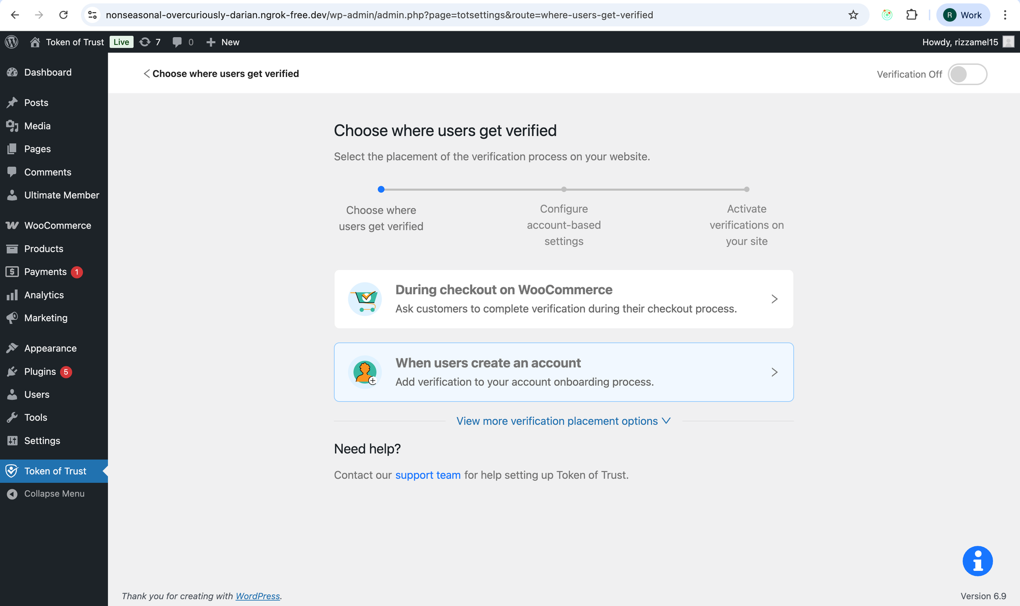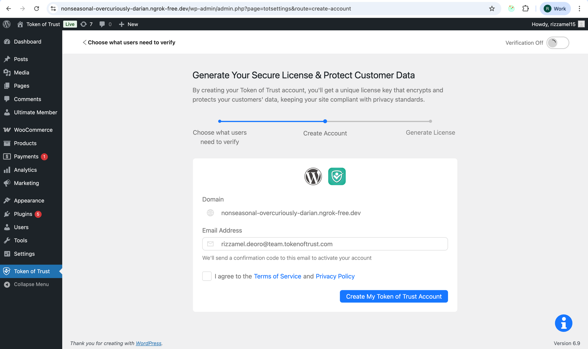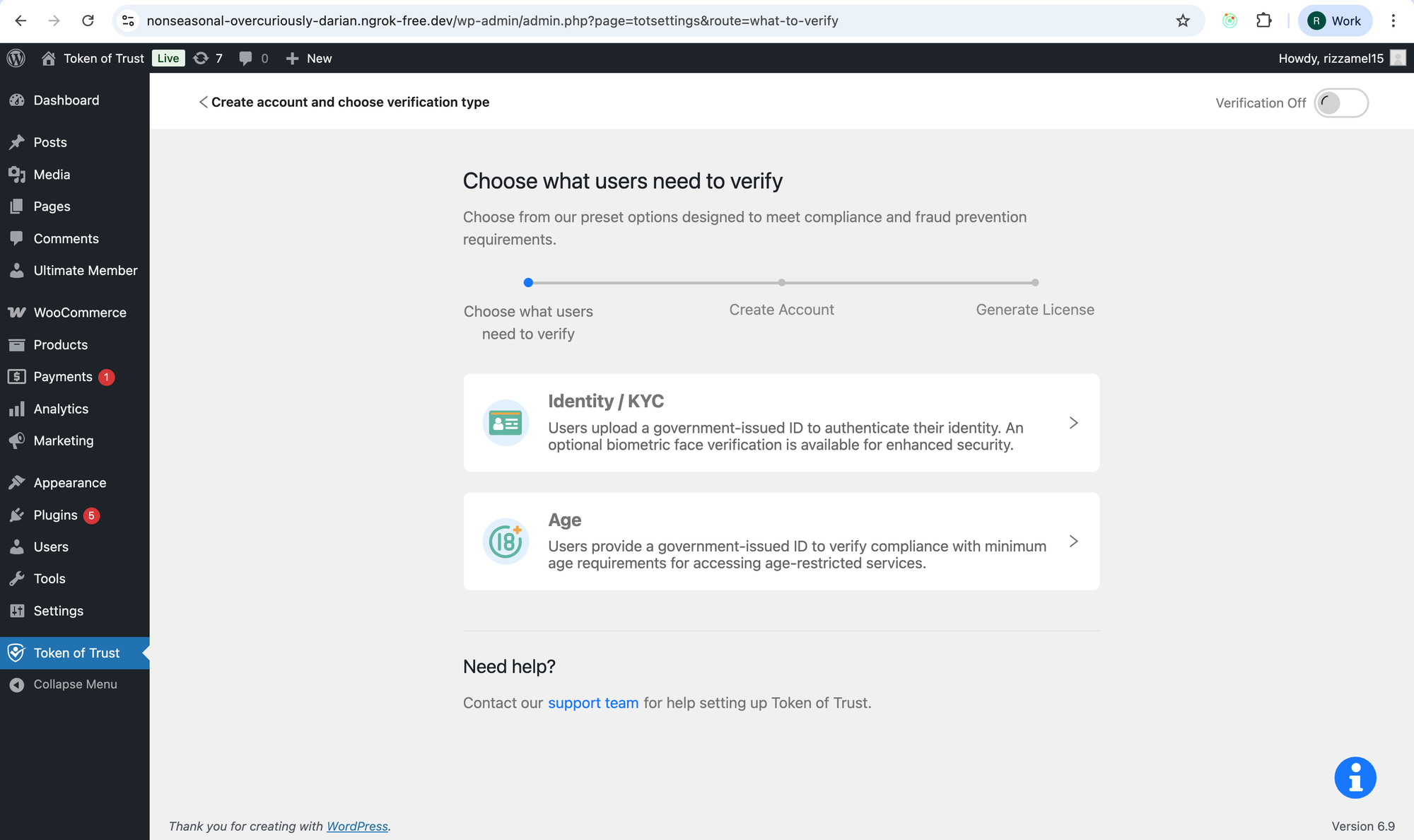 Create account and choose verification type