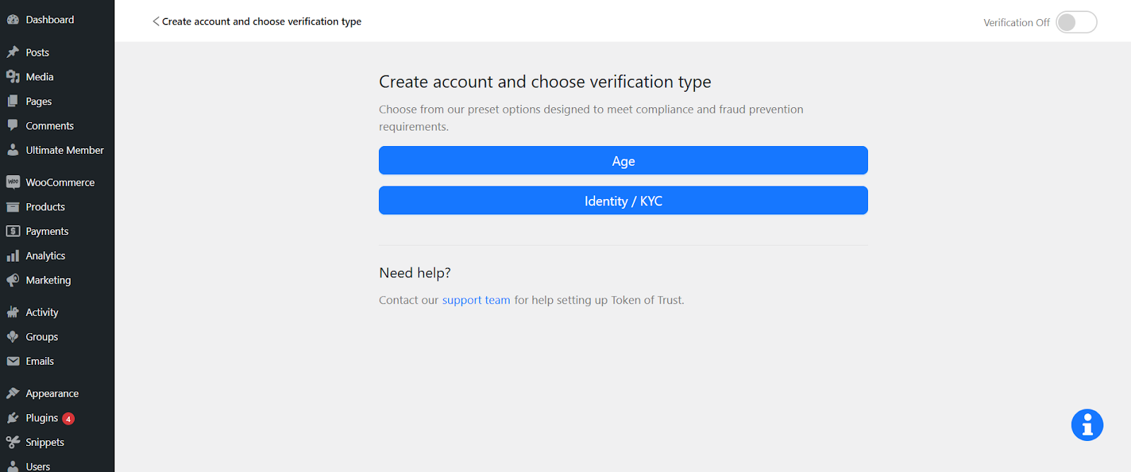 The WordPress onboarding wizard lets users who just installed the TOT plugin on their site sign up for new API keys in TOT and go through a consultative plan with the nav bar. Then, they are automatically redirected back to WordPress where they see a modal asking them to click a button that lets them complete their integration.